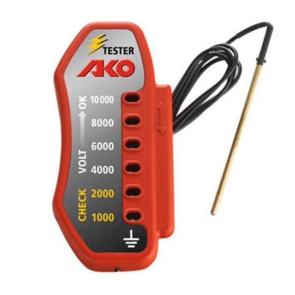 De Ako Afrasteringstester tot 10000v is een spanningstester om het voltage van een weide afrastering te testen. De tester geeft spanning in 6 stappen aan en heeft geen batterijen nodig.