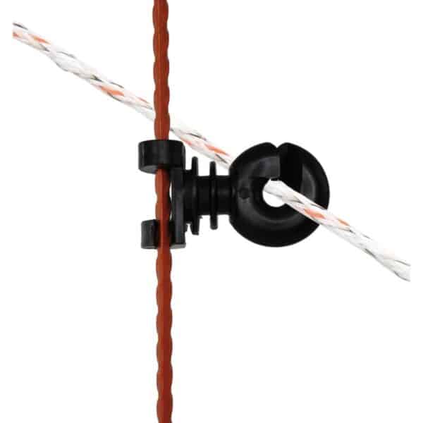 Gallagher kunststofisolator voor het toevoegen van draad op ovale veerstalen palen. De verstelbare isolator is geschikt voor kunststofdraad.