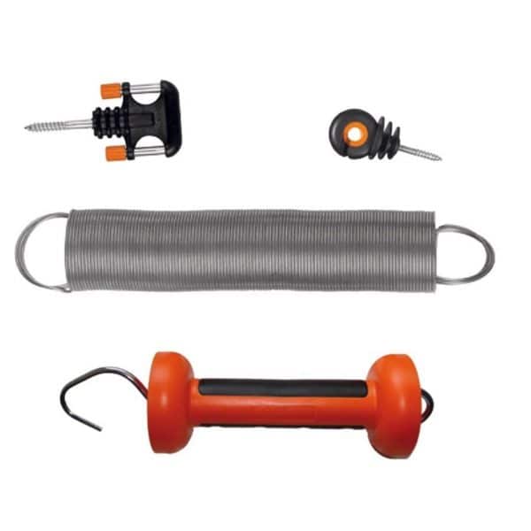 Gallagher verende hekafsluiter, met de poortgreepset maakt u eenvoudig een doorgang door uw afrastering. U bevestigt eenvoudig de veer aan de poortgreep en haakt deze in de bijgeleverde poortgreepanker. De maximale lengte van de doorgang is 5 meter.