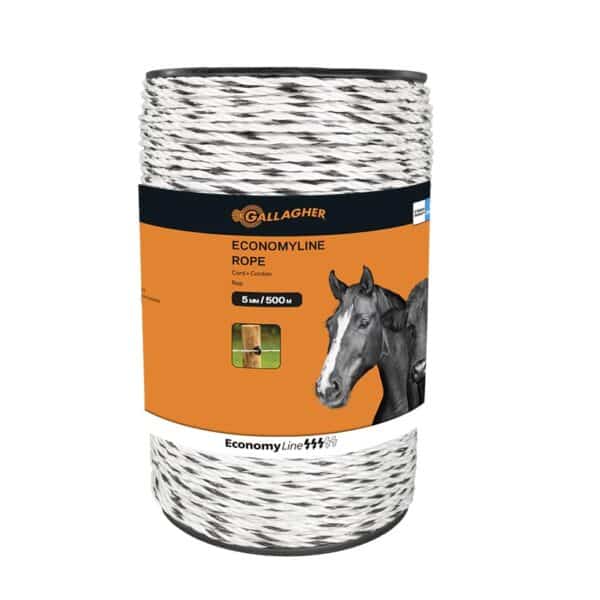 Gedraaid kunststofkoord geschikt voor verplaatsbare/tijdelijke paarden- en vee afrasteringen korter dan 500 meter. Uitstekende geleiding dankzij 5 roestvrijstalen draden. Het EconomyLine cord is eenvoudig te installeren.