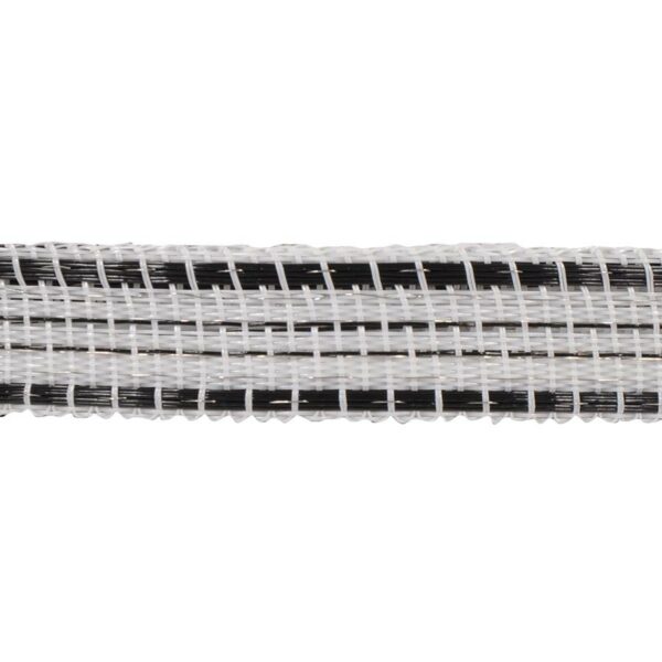 Goed zichtbaar stevig wit lint voor verplaatsbare afrasteringen voor paarden en vee. Bedoeld voor afrasteringen korter dan 500 meter. 5 roestvrijstalen geleiders van 0,15 mm en 1 lichtmetalen draad van 0,25 mm zorgen voor een uitstekende geleiding. Het lint heeft een zwarte kantdraad ter versterking. De UV-garantie op het Powerline 20mm lint is 5 jaar.