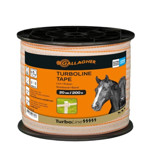 TurboLine 20 mm lint is bestemd voor verplaatsbare paardenafrasteringen langer dan 500 meter. Het lint is extra sterk vanwege het versterkte rode kantdraad in de randen.