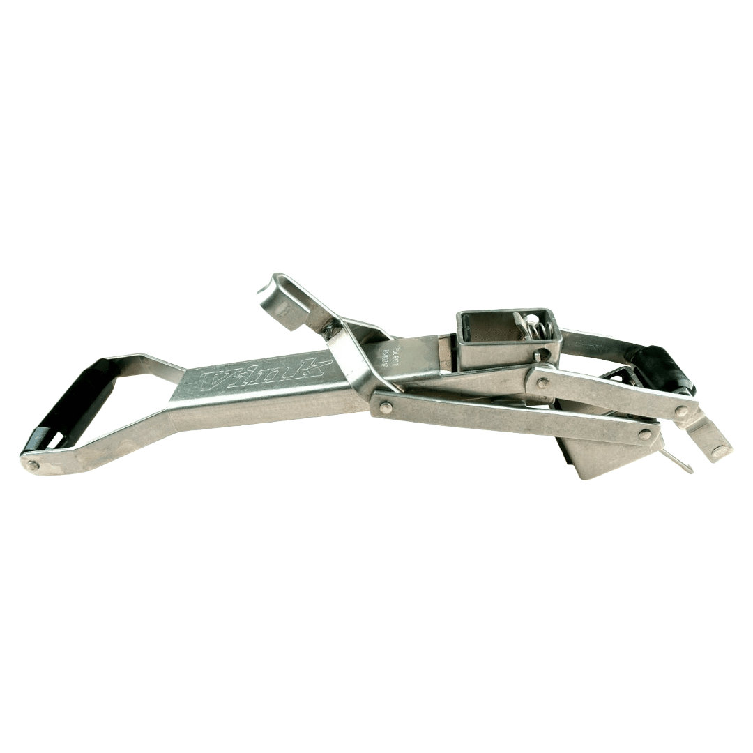 Het krikgedeelte, poot voor poot, van de Vink veeverlosser is vervaardigd van duurzaam roestvrij staal (RVS), wat zorgt voor een lange levensduur en bestendigheid tegen corrosie.