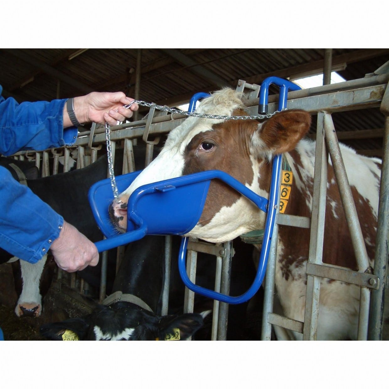 Medicijnen, bolussen, koedranken of andere middelen kunnen gemakkelijk worden toegediend en behandelingen aan de kop van de koe kunnen worden doorgevoerd zonder gevaar voor mens of dier.