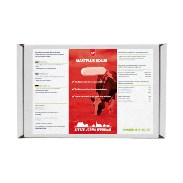 – 1 Mastplus bolus bij beginnende uierproblemen en/ of verhoogd celgetal.