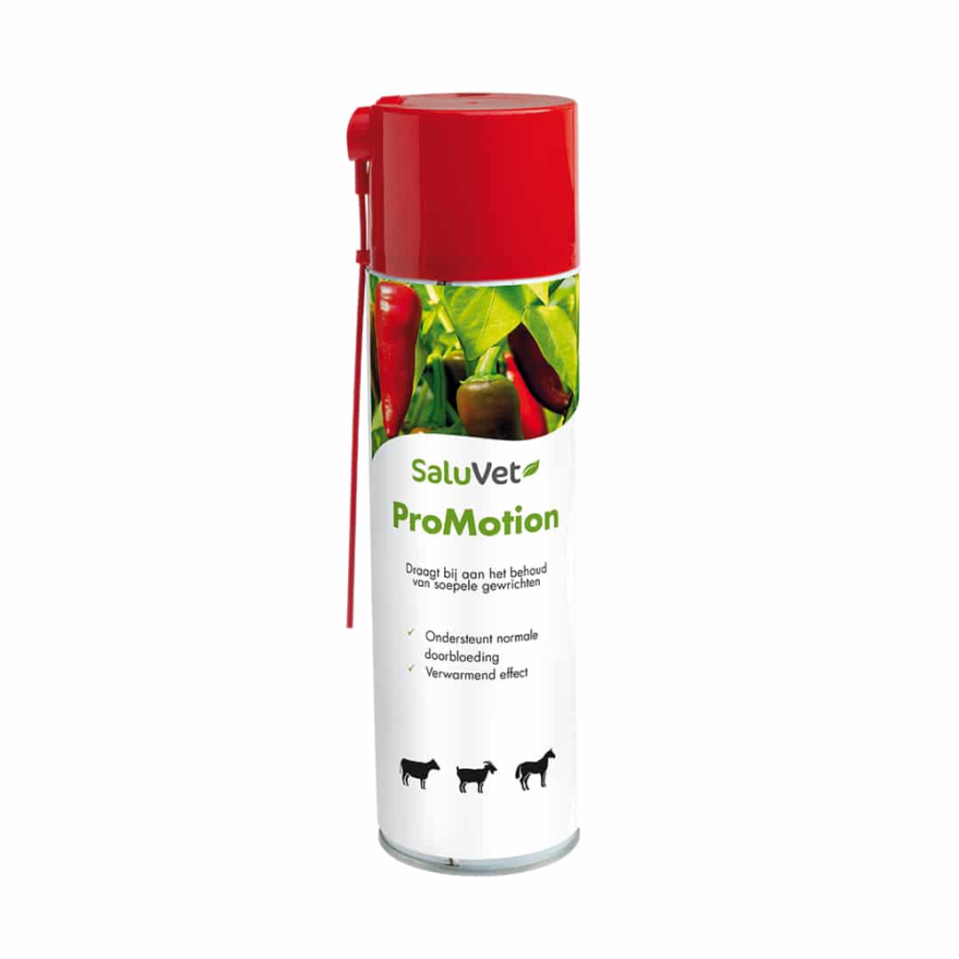 ProMotion gewrichtslotion van SaluVet draagt bij aan het behoud van soepele gewrichten. ProMotion is speciaal ontworpen om het behoud van een normale doorbloeding van de gewrichten van vee te ondersteunen. Een optimale gewrichtsfunctie is essentieel voor het welzijn en ProMotion is de perfecte keuze om dit te bevorderen.