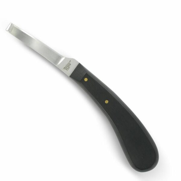 Aesculap hoefmes VC311, kwalitatief hoogwaardig mes uit roestvast staal voor het bekappen van klauwen en hoeven. Het Aesculap klauwbekapmes is een Deens model, een breed model mes met een ebben houten zwart heft. Het VC311 bekapmes is van hoge kwaliteit en zeer slijtvast.