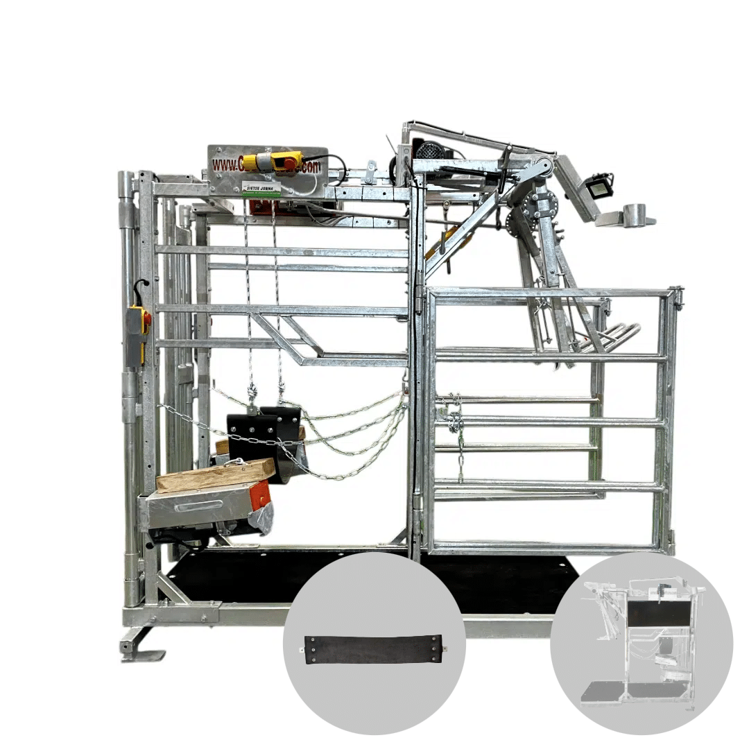 De elektrische GDS-Hoofcare klauwbekapbox is een robuuste volbad gegalvaniseerde box, bedrijfsklaar uitgerust om koeien makkelijk zelf te kunnen bekappen. De klauwbekapbox is standaard voorzien van een extra W-fixeerbeugel om de achterpoot van de koe nog beter vast te zetten. Deze klauwbekapbox is uitgebreid met een 2e buikriem en zijschotten. Deze zijschotten bewegen samen met de 2 buikbanden omhoog en omlaag, wat zorgt voor extra veiligheid en controle tijdens het bekappen. Door de zijschotten kan de koe haar kop niet opzij steken, bepekert het zicht wat rust geeft tijdens het klauwbekappen.