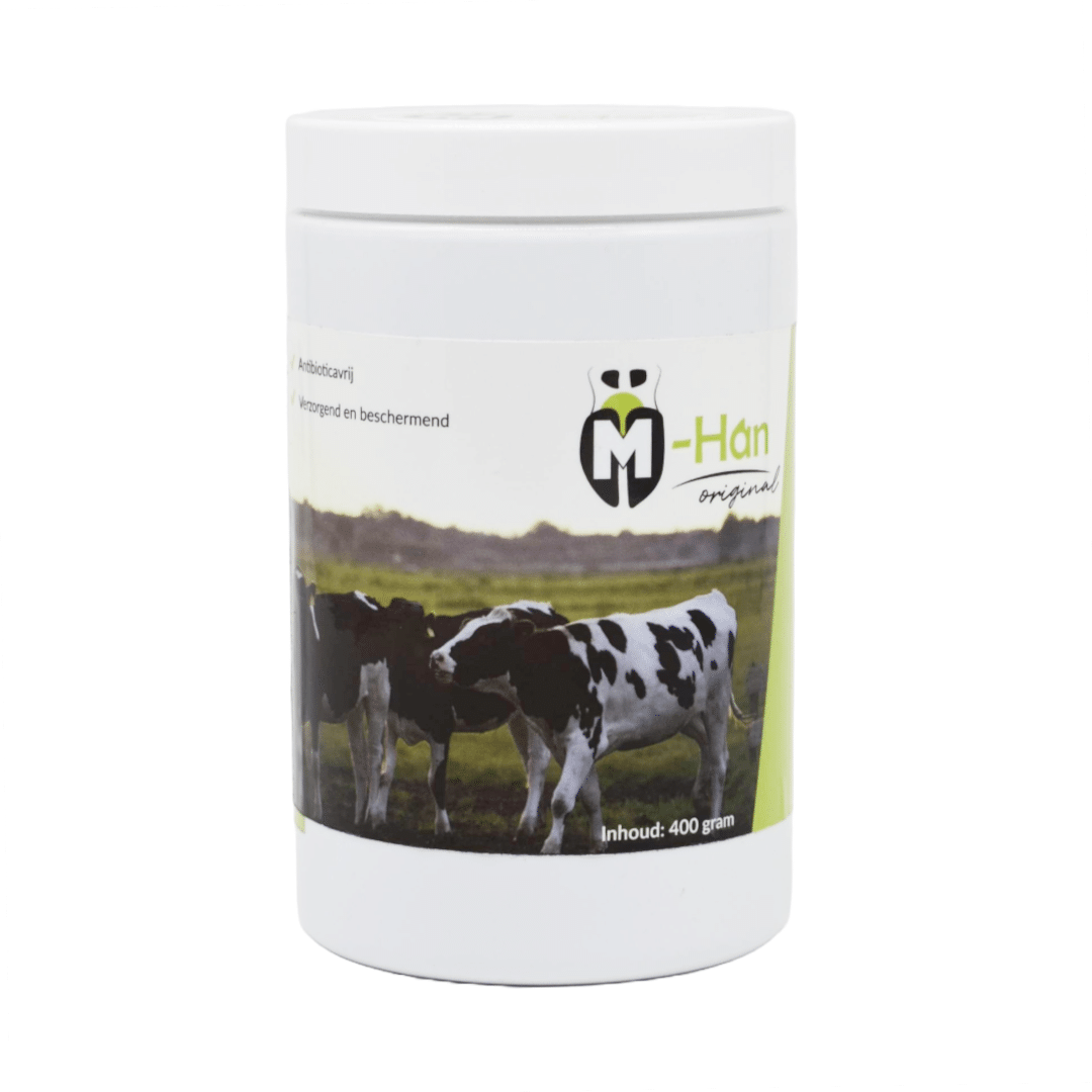M-Han hoofgel is een effectief verzorgingsproduct voor de behandeling van mortellaro en stinkpoot bij rundvee. Deze antibiotica-vrije pasta droogt snel op, vormt een beschermende laag en voorkomt dat omgevingsbacteriën de huid en hoef van de koe aantasten. Breng eenvoudig aan met een kwast voor optimale bescherming en verzorging.