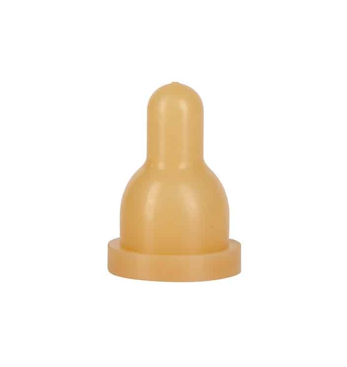 Korte geel/bruine lammerspeen, geschikt voor de Lambar Protector. De transparante lammerbarspeen is gemaakt van natuur rubber.