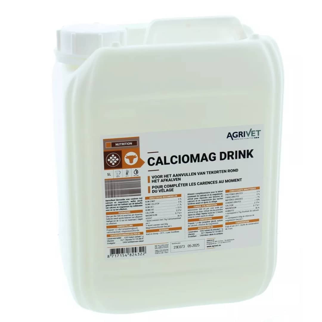 Agrivet Calciomag Drink 5ltr is een voedingssupplement met calcium en magnesium voor koeien. Dit calcium magnesium drank is een orale vloeistof ter preventie van melkziekte bij koeien rondom en na het afkalven en ter behandeling van calcium en magnesium tekorten bij koeien. Agrivet Calciomag Drink 5ltr is een aanvullend diervoeder voor runderen.