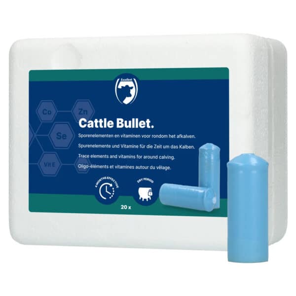 De Cattle Bullet droogstandbolus van Excellent is een hoogwaardig aanvullend mineraal dieetvoeder voor grasgevoederd rundvee. Speciaal ontwikkeld voor gebruik rond het afkalven, zorgt deze bolus gedurende 4 maanden voor een gecontroleerde afgifte van essentiële mineralen en vitaminen.