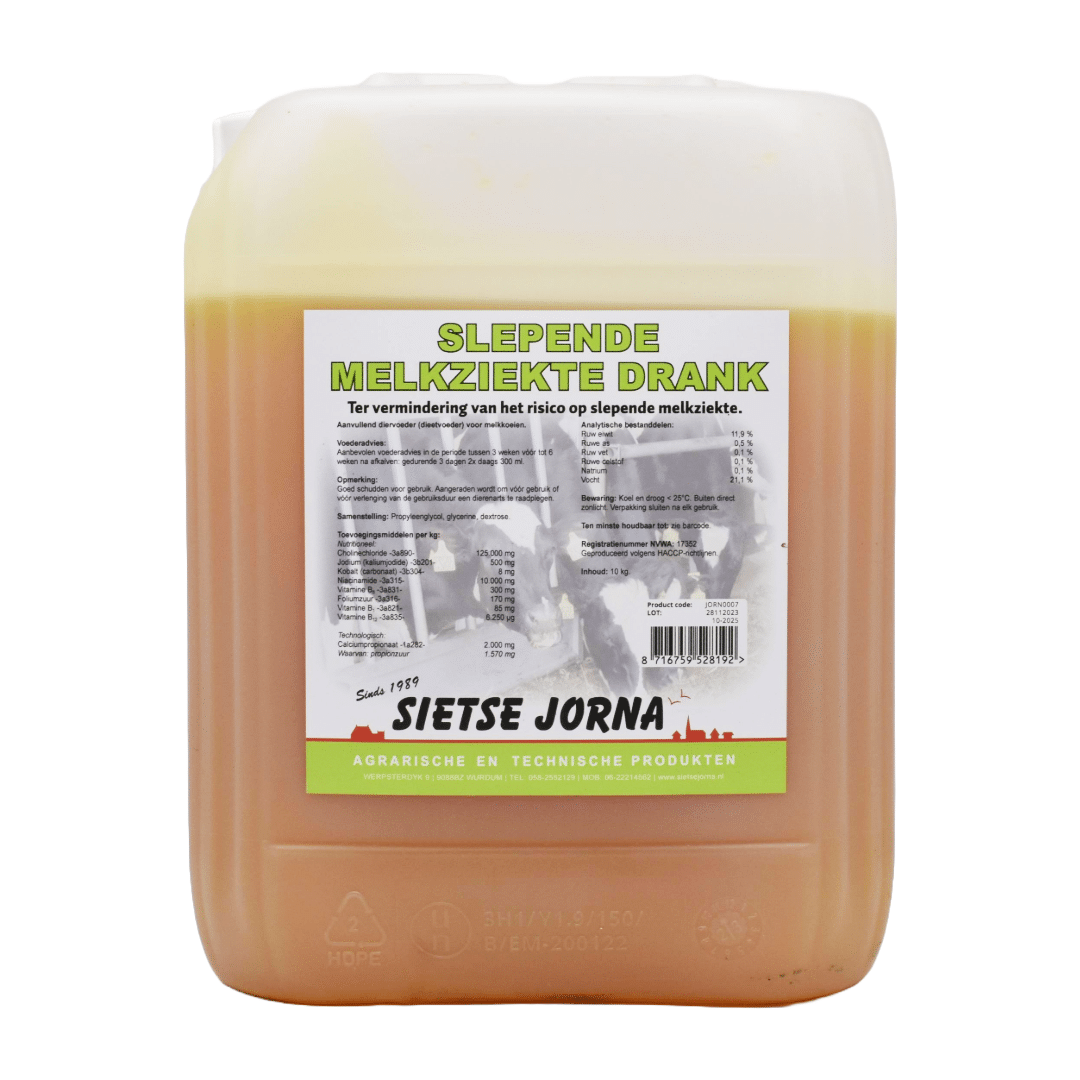Slepende melkziekte drank SJ is een drenchproduct voor melkvee ter vermindering van het risico op slepende melkziekte.