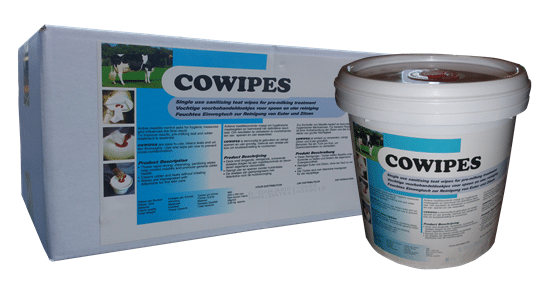 Cowipes; snel drogende, reinigende, zuiverende, doekjes dragen bij aan mastitiscontrole en bevorderen algemene uierconditie. Cowipes vochtige uierdoekjes zijn geïmpregneerd met chloorhexidine, allantoïne en alcohol voor de optimale huidverzorging. De vochtige uierdoekjes zijn gemaakt van een sterk, zacht materiaal voor de huid; non-woven (polypropyleen en viscose), zij zorgen voor een hoge vuilopname capaciteit van de spenen. Met Cowipes reinigt u de uier zonder huidirritatie te veroorzaken, na de reiniging verdampt het product snel; zo blijft er een schone en droge speen achter.