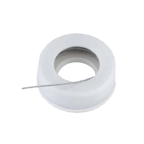 Draadzaag die gebruikt wordt bij het onthoornen. De onthoorndraadzaag is licht en snel te gebruiken, 12 meter per rol. De handvaten zijn apart te verkrijgen.