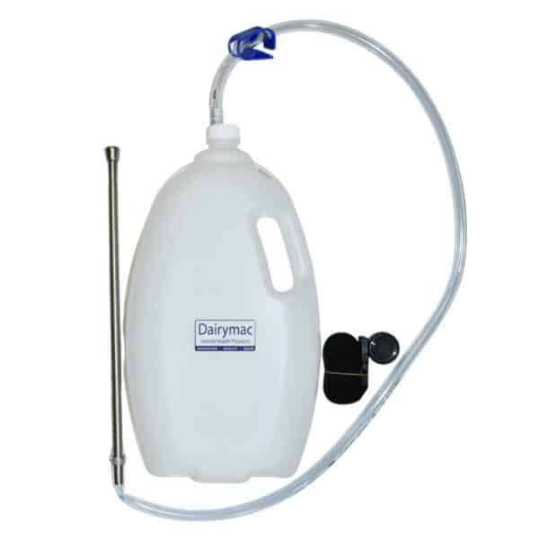 De Dairymac Drencher 5ltr is de ideale en betrouwbare drencher/ sonde voor kalveren. Deze hoogwaardige drencher is uitgerust met een stevige 5 liter fles, een duurzame stalen slang, en een stalen sonde kop met een doorsnede van 1 cm. De metalen sonde behoudt zijn gladde oppervlak, wat voorkomt dat het kalf beschadigd raakt aan bijvoorbeeld zijn slokdarm. In tegenstelling tot plastic sondes, blijft deze sonde vrij van ruwe plekken, zelfs na veelvuldig gebruik. Dankzij het handige hengsel kan je de drencher comfortabel op de buik of rug dragen, waardoor je beide handen vrij hebt voor het veilig toedienen van vloeistoffen.