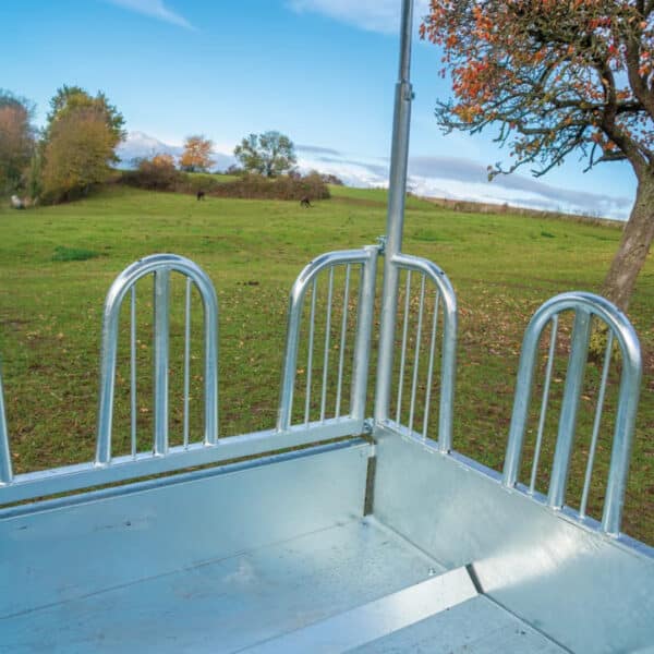 De hooiruif is geschikt voor ronde balen tot Ø 1,20 m en wordt geleverd als bouwpakket met een duidelijke montagehandleiding. De optioneel insteekbare driepuntsophanging maakt transport eenvoudig en kan na gebruik volledig worden verwijderd voor extra dierveiligheid.