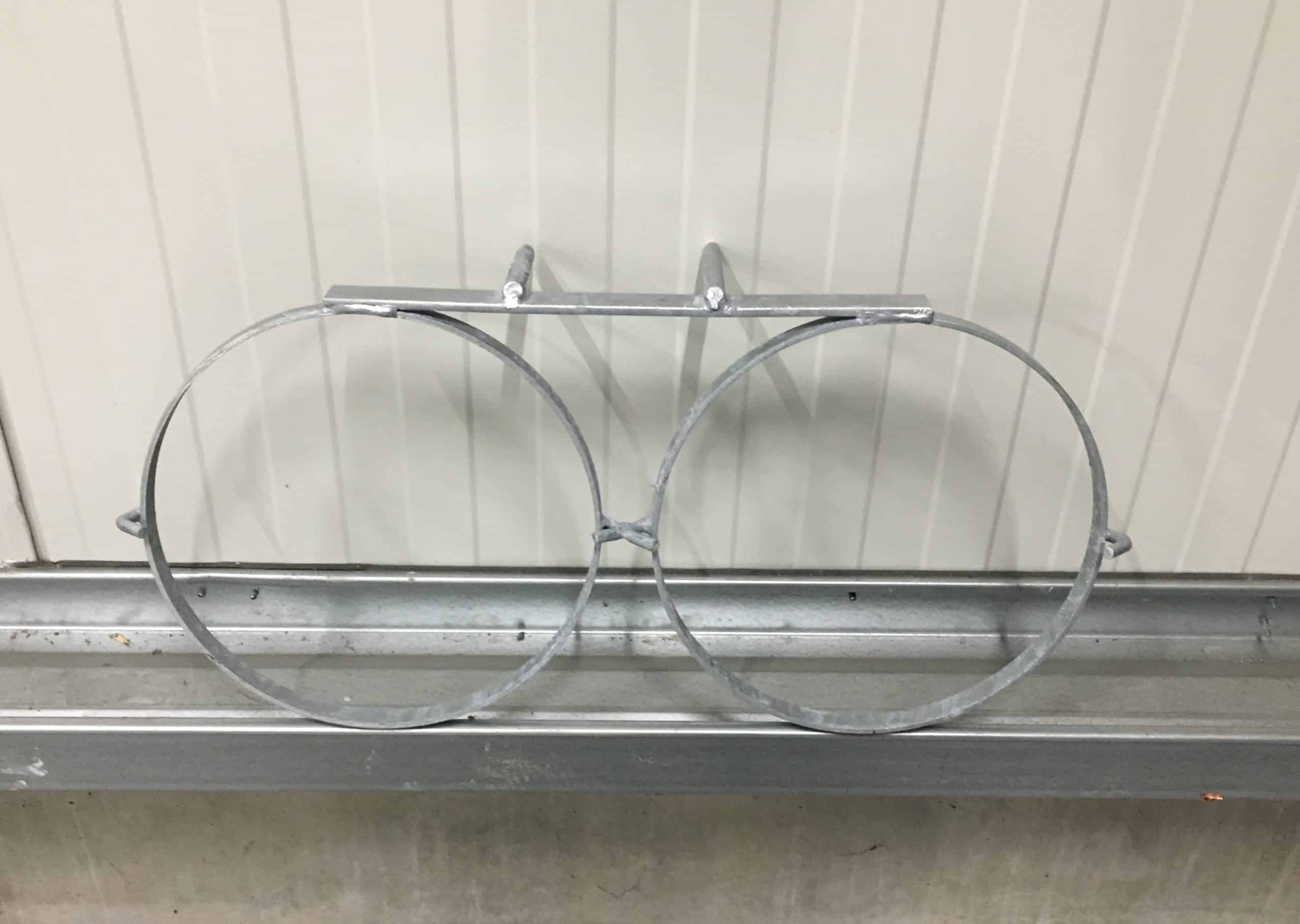 De emmerbeugel kan eenvoudig dmv twee pennen gemonteerd worden in het kalverhek front. De afmeting van de ring is geschikt voor emmers en voerbakjes.