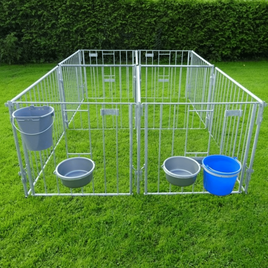 De kalverhekken zijn ontworpen met een slim te kopelen systeem. Hierdoor kun je de hekjes eenvoudig aan elkaar verbinden en meerdere kalverhokken naast of achter elkaar plaatsen. Dit maakt het mogelijk om complete rijen te bouwen en flexibel in te spelen op de beschikbare stalruimte.