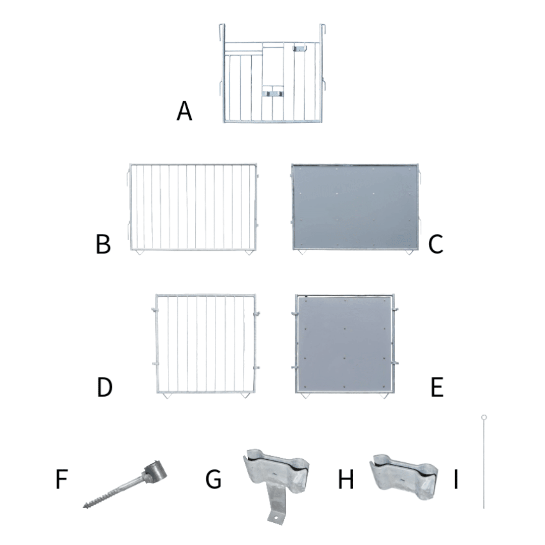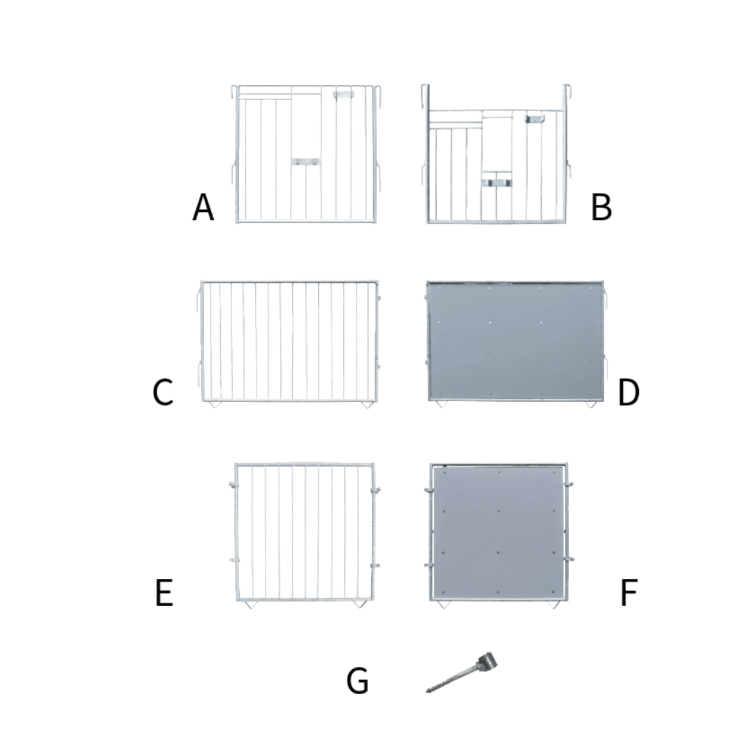 Ook is het vernieuwde fronthek (B) verkrijgbaar. Dit hek maakt het gemakkelijker om over het hekje in het kalverhok te stappen. Beide fronthekjes zijn wel makkelijk aan 1 kant lost me maken om ook voorlangs in het hok te kunnen stappen.