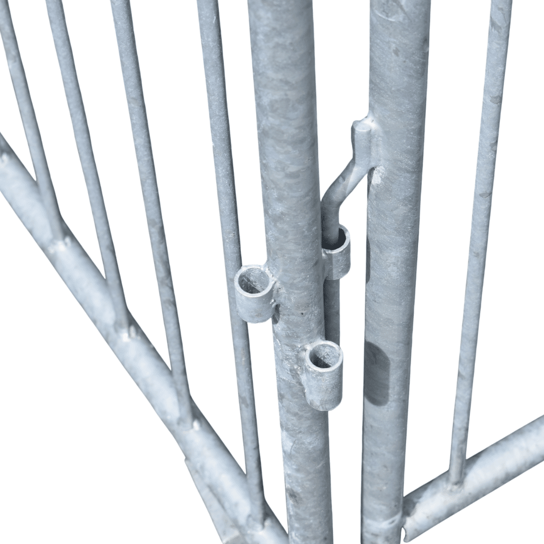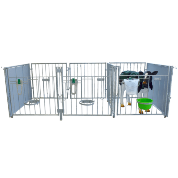 De kalverhekken zijn ontworpen met een slim te koppelen systeem. Hierdoor kun je de hekjes eenvoudig aan elkaar verbinden en meerdere kalverhokken naast of achter elkaar plaatsen. Dit maakt het mogelijk om complete rijen te bouwen en flexibel in te spelen op de beschikbare stalruimte.