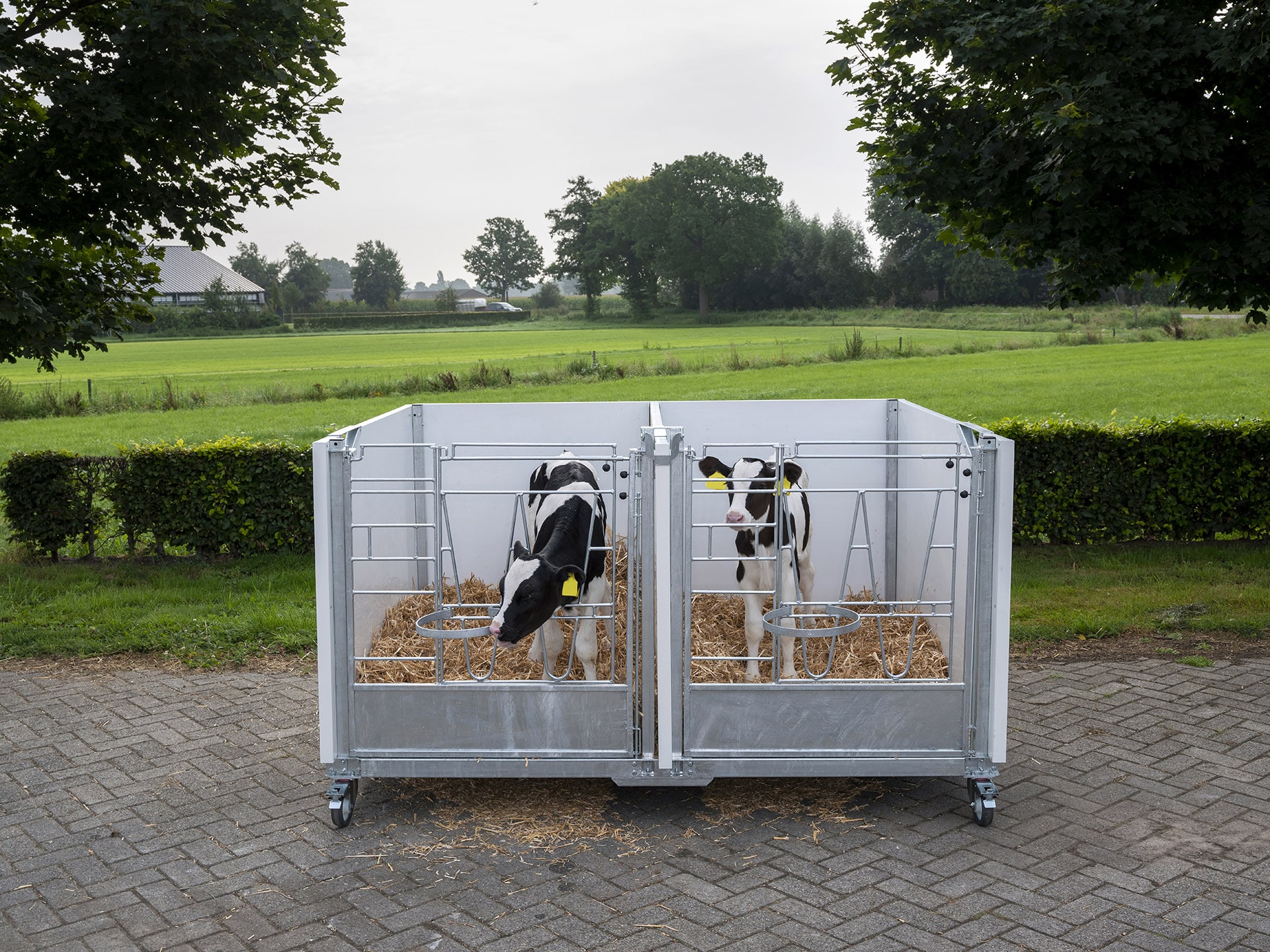 De CalfOTel Open Top Premium Duo is een verrijdbaar kalverhok voor de veehouder die kalveren binnen wil houden of onder een afdak. De CalfOTel Open Top Premium Duo heeft een verwijderbare tussenwand, waardoor twee kalveren eenvoudig kunnen worden samengevoegd zonder dat ze verplaatst worden. Dit voorkomt stress en zorgt voor een betere sociale ontwikkeling. Het product scoort goed op gebruiksgemak en hygiëne. Zo heeft het een tweedelig opsluithek, waarmee je het kalverhok kunt betreden zonder het kalf te storen tijdens het drinken. Het tweedelige opsluithek is in één simpele handeling te openen en ook te verwijderen. Dit geldt ook voor het rooster. Deze is binnen enkele seconden verwijderd en weer teruggeplaatst. Dit maakt het reinigen heel eenvoudig. Het systeem is praktisch en flexibel en zorgt voor een hoge hygiëne en gebruiksvriendelijkheid. Wij van Sietse Jorna informeren je graag naar alle mogelijkheden.