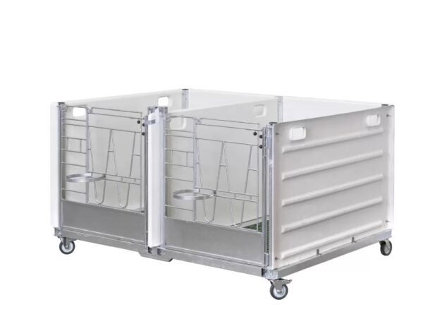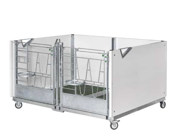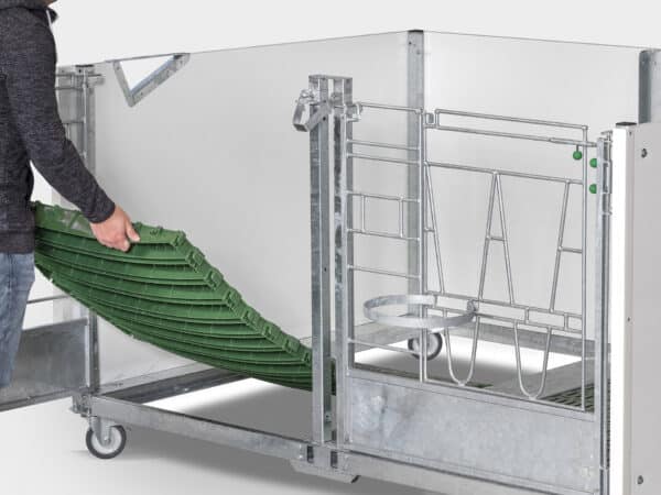 De CalfOTel Open Top Premium Duo is een verrijdbaar kalverhok voor de veehouder die kalveren binnen wil houden of onder een afdak. De CalfOTel Open Top Premium Duo heeft een verwijderbare tussenwand, waardoor twee kalveren eenvoudig kunnen worden samengevoegd zonder dat ze verplaatst worden. Dit voorkomt stress en zorgt voor een betere sociale ontwikkeling. Het product scoort goed op gebruiksgemak en hygiëne. Zo heeft het een tweedelig opsluithek, waarmee je het kalverhok kunt betreden zonder het kalf te storen tijdens het drinken. Het tweedelige opsluithek is in één simpele handeling te openen en ook te verwijderen. Dit geldt ook voor het rooster. Deze is binnen enkele seconden verwijderd en weer teruggeplaatst. Dit maakt het reinigen heel eenvoudig. Het systeem is praktisch en flexibel en zorgt voor een hoge hygiëne en gebruiksvriendelijkheid. Wij van Sietse Jorna informeren je graag naar alle mogelijkheden.