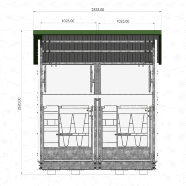 De CalfOTel Flex 2 biedt ruimte aan twee kalveren met elk hun eigen plek van 102 x 160 cm. Dankzij de uitneembare tussenschotten schakel je moeiteloos van individuele huisvesting naar duo-opstelling.