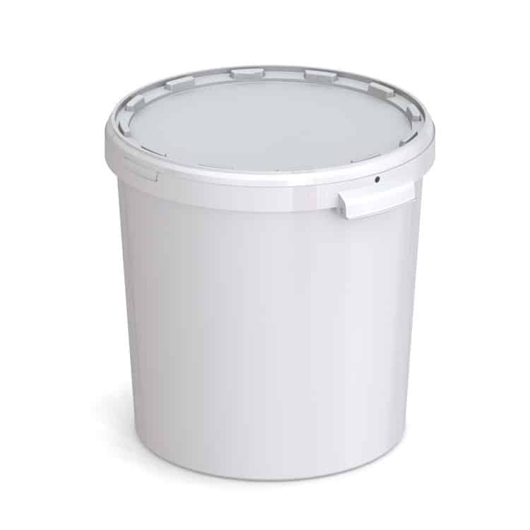 Emmer kunststof wit met een inhoud van 33 liter, te gebruiken voor het verpakken en opslaan van verschillende soorten producten. De emmer wordt geleverd zonder hengsel en deksel.