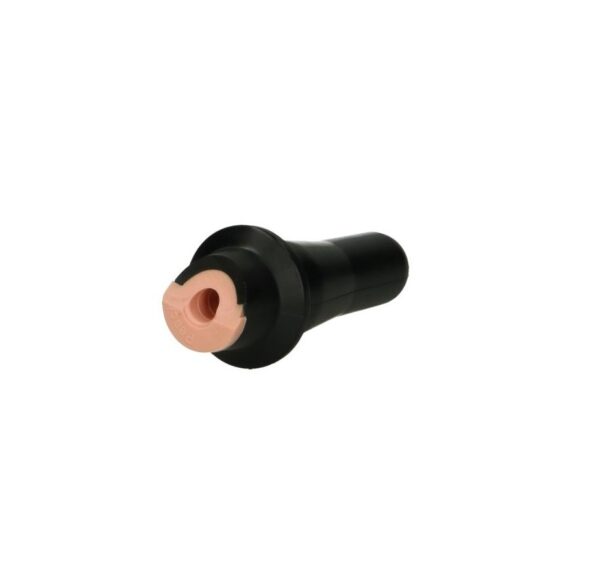 Peach Teat Pull Through rubberen kalverspeen in de kleur zwart. De Peach Teat doortrekspeen kan in een speenemmer of groepsdrinkbar met een gat van 19mm worden getrokken. Door de verticaal geplaatste openingen moeten de kalveren harder aan de speen zuigen.