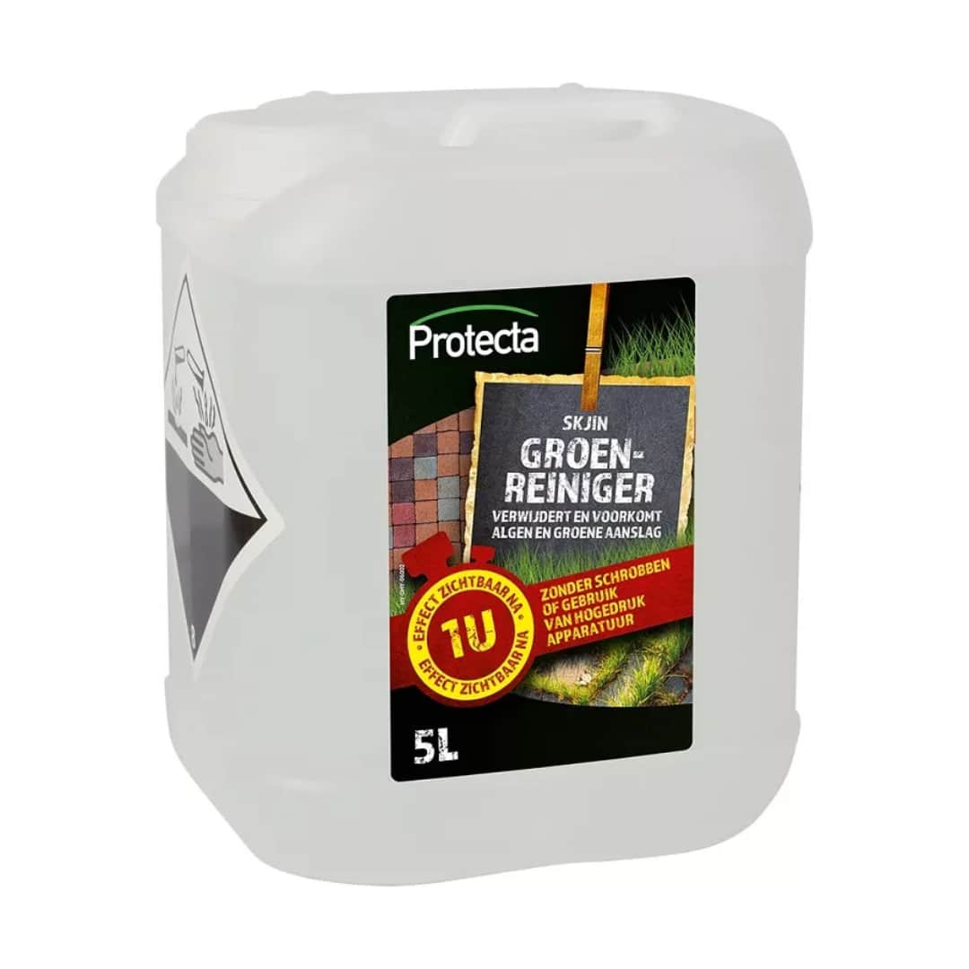Skjin groenreiniger is het milieuvriendelijke product dat eenvoudig en effectief algen, mossen en groene aanslag verwijdert, zonder dat schrobben of het gebruik van hogedrukapparatuur nodig is. Dit biologische afbreekbare reinigingsmiddel heeft een neutrale pH-waarde en is vriendelijk voor zowel mens als materiaal. Bovendien is het niet schadelijk voor de ondergrond waarop het wordt toegepast.