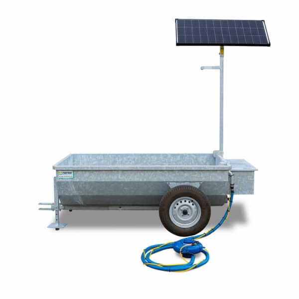 Mobiele weidedrinkbak op zonne-energie geschikt voor oppervlaktewater (slootwater). De verrijdbare Poortman drinkbak is geschikt voor alle diersoorten, behalve kleinvee. Maximaal +/- 200 paarden, jong- en grootvee en 120 melkkoeien (“large drinkers”). Het waterreservoir is snel leeg waarna de drinkunit eenvoudig verplaatst kan worden door de uitschuifbaar dissel en twee stevige wielen. Een maximale wateropbrengst van7580 liter per uur. Werkelijke opbrengst is 4800 liter per uur door 5 meter slang met één meter opvoerhoogte. De veedrinkunit is geheel gemaakt van dik gegalvaniseerd (plaat)staal, gegarandeerd een lange levensduur!