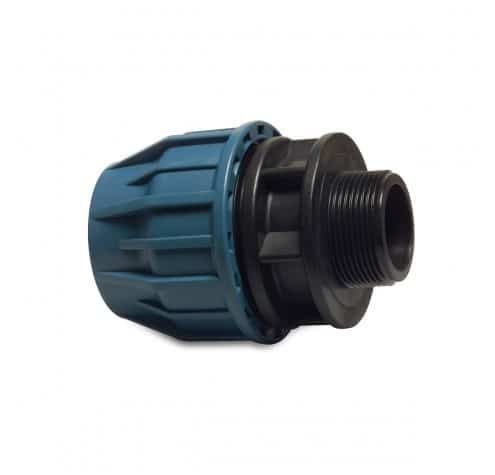 PP aansluitkoppeling met buitendraad, de koppeling is bijvoorbeeld te gebruiken om een tyleenbuis, ook wel PE buis genoemd, aan te sluiten op een pomp. De koppeling is gemaakt van polypropeen (PP), polypropeen is een materiaal met een hoge slagvastheid en een hoog temperatuurbereik. Bovendien is het materiaal licht van gewicht en heeft het een hoge chemische bestendigheid. De tyleenkoppeling is voorzien van een knelverbinding en buitendraad. Door deze klem verbinding is de tyleenslang eenvoudig te koppelen, hier heeft u geen speciaal gereedschap voor nodig. De degelijke koppeling is trekvast en wordt veel gebruikt in de agrarische sector.