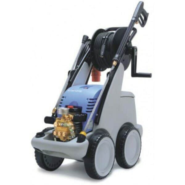 De hogedrukspuit is standaard uitgevoerd met 15 meter hogedrukslang op een haspel, RVS land met vlakstraalnozzle, RVS lans met vuilfrees, total-stop met naloop vertraging, 7,5 meter kabel, een water resevoir van 10 liter en een reinigingsmiddelen aanzuig ventiel.
