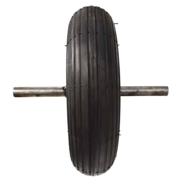 Dit kruiwagenwiel (stalen velg) met een aslengte van 38cm is speciaal ontworpen voor de “Wiersma” kruiwagen en biedt robuuste duurzaamheid en uitstekende prestaties.