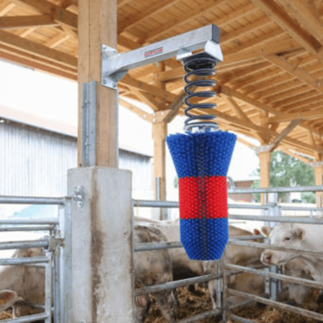 De HappyCow MaxiSwing is een flexibele en prijsbewuste koeborstel zonder stroomaansluiting, speciaal ontwikkeld voor koeien en paarden, maar wordt veel gebruikt bij groepen jongvee. Dankzij de slimme veerophanging beweegt de borstel soepel mee met het dier en biedt deze een optimale tegendruk voor een effectieve reiniging en massage.