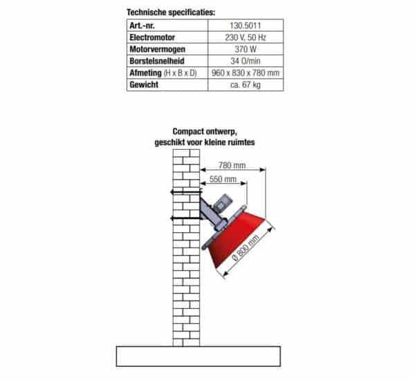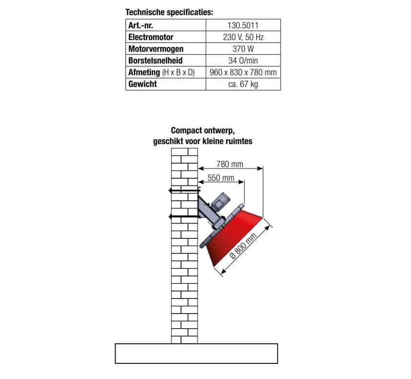 – Koeborstel: 96 x 83 x 78 cm (h x b x d)