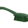 Vikan afwasborstel met harde vezels, een korte steel en een ergonomisch en praktisch design. Deze borstel wordt vaak gebruikt voor dagelijkse schoonmaakwerkzaamheden in de industrie, detailhandel, horeca en in institutionele keukens. De afwasborstel is geschikt voor hardnekkig vuil op gladde oppervlakken, zoals transportbanden, productielijnen, machines en plekken waar voedsel bereid wordt.