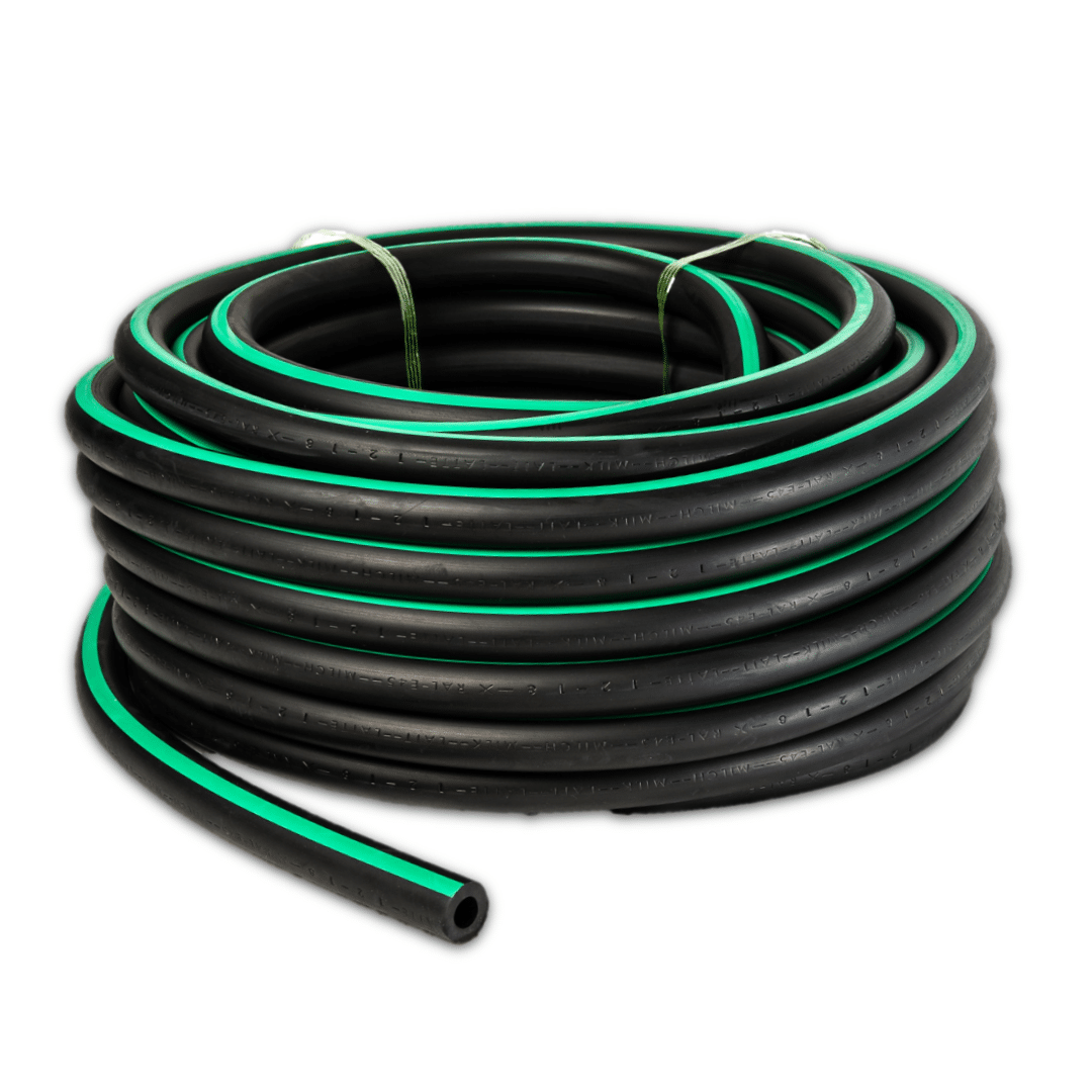 De melkslang rubber 16 x 27 mm met groene streep is een robuuste en flexibele slang, speciaal ontworpen voor een betrouwbare en hygiënische melkdoorvoer in melkstallen en melkinstallaties. Dankzij het duurzame rubbermateriaal is deze slang bestand tegen intensief dagelijks gebruik en vacuümbelasting.