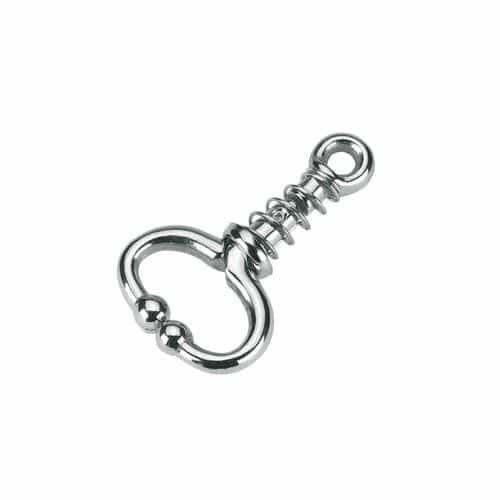 Vernikkelde stierengeleider met een spiraalveer. De stierengeleider is 11cm lang, en heeft een diameter van 80mm.