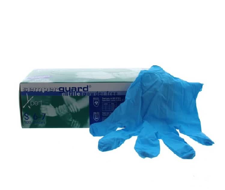 Semperguard Xpert Nitril handschoenen, een zeer sterkte poedervrije en waterdichte beschermende handschoen. Deze zeer sterke handschoenen voldoen aan de normen EN455, EN374 en EN420, en zijn goedgekeurd door de LCHV (GGD). De Semperguard melkhandschoen is gemaakt van 100% synthetisch nitril en is erg sterk en rekbaar met een stevig manchet met rolrand. De Semperguard nitrile handschoenen zijn zeer geschikt om mee te melken.