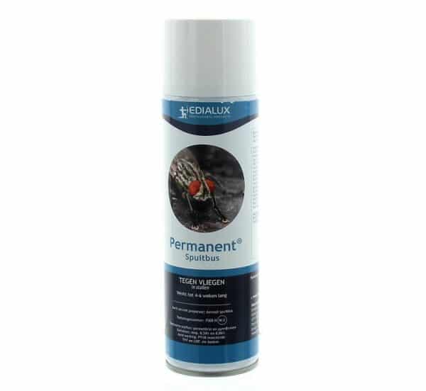De Permanent Spuitbus is een krachtig en langdurig werkend vliegenbestrijdingsmiddel dat speciaal ontwikkeld is voor gebruik in de omgeving van vee. Dankzij de combinatie van de werkzame stoffen Permethrin (0,59%) en Pyrethrinen (0,06%) worden vliegen effectief bestreden, met een langdurige werking van 4 tot 6 weken.