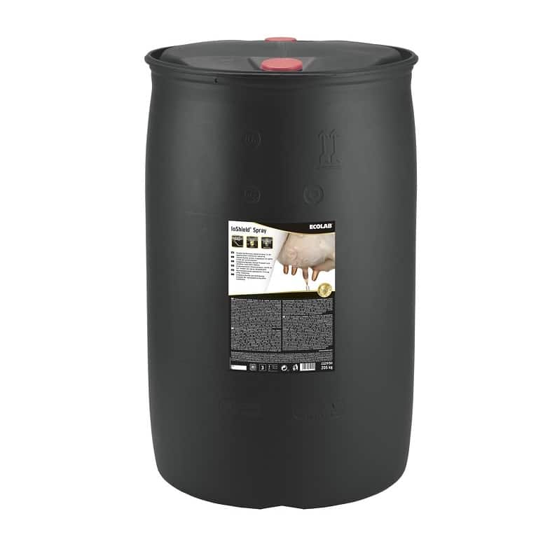 Ecolab IoShield Spray is een dubbel actieve spraybare barrière voor de dagelijkse bescherming en desinfectie van de spenen na het melken. Io-Shield Spray is een effectief barrièreproduct op basis van PVP jodium voor optimale uierdesinfectie en –bescherming tussen de melkbeurten. Het product droogt snel en vormt een unieke zichtbare en beschermende barrière tegen koegebonden- en omgevingsbacteriën. Dankzij de huidverzorgende componenten in Ecolab IoShield Spray blijft de speenhuid glad en soepel. De uierspray is gebruiksklaar en geschikt voor de spenen van melkkoeien, schapen en geiten. Het middel is gebruiksklaar en kan direct toegepast worden, voorkom dat de koeien gaan liggen totdat het product is gedroogd.