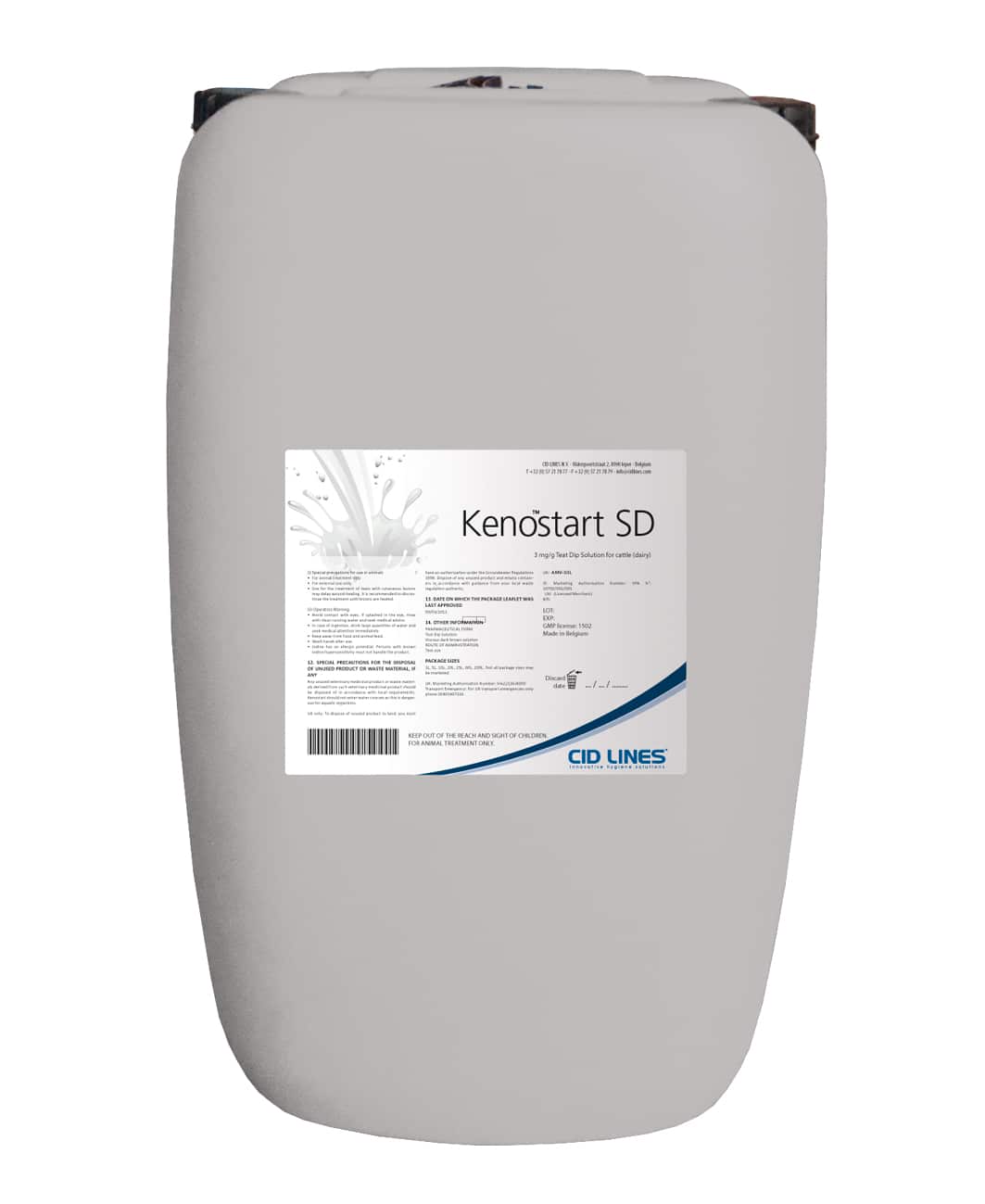 Cid Lines Kenostart spray & dip is geregistreerd als medicinaal dipmiddel in 15 Europese landen. Kenostart is een spray op basis van actief jodium. Het heeft uitstekende ontsmettende en huidverzachtende eigenschappen. Kenostart spray en dip blijft goed aan de spenen kleven maar verstopt de spraylijnen niet. Kenostart SD wordt het veelvuldig voor melkrobots gebruikt.