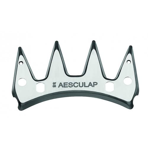 Aesculap Econom bovenmes voor speciale schapenscheerkop GT578, het veescheermes heeft 4 tanden. Het GT 578 bovenmes is passend op de Aesculap Econom veescheermachines voor schapen.