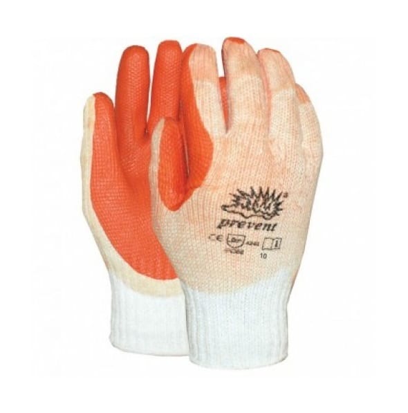 De werkhandschoen Prevent is gemaakt van een naadloos gebreide ecru polyamide, met een slijtvaste latex coating in de handpalm en de binnenzijde van de duim. De handpalm is voorzien van profiel waardoor de werkhandschoen minder snel slijt. De binnenzijde van de duim is tevens voorzien van een extra versterking. Open rug voor extra ventilatie.