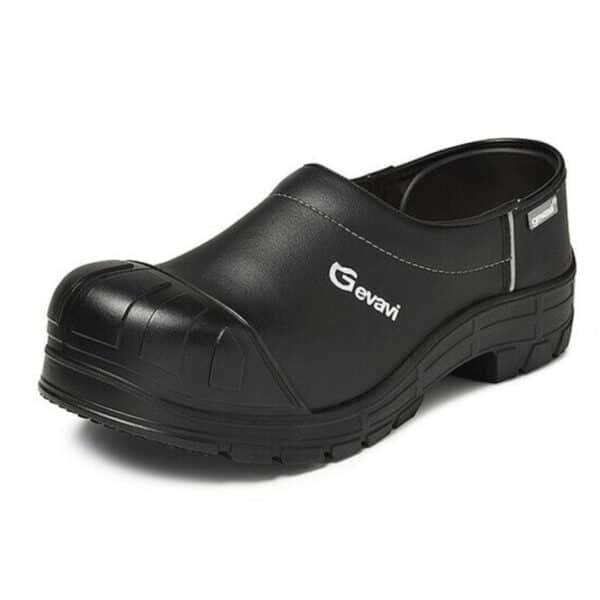 De Gevavi Syrdic Flex is een extra brede veiligheidsklomp. Deze zwarte S3 instapklomp heeft een robuuste uitstraling dankzij de slijtvaste overneus met extra stootblokken. Subtiele reflecterende strepen aan de zijkant.