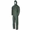 Flexothane regenoverall spuitoverall in de kleur groen. Deze regenoverall is ideaal als regen werk-overall te gebruiken vanwege het sterke en soepele materiaal. De overall heeft een vaste capuchon, een ritssluiting, verstelbare mouwen en pijpen. De Flexothane spuitoverall is 100% waterdicht / winddicht soepel / elastisch / comfortabel / lichtgewicht en geluidsarm.