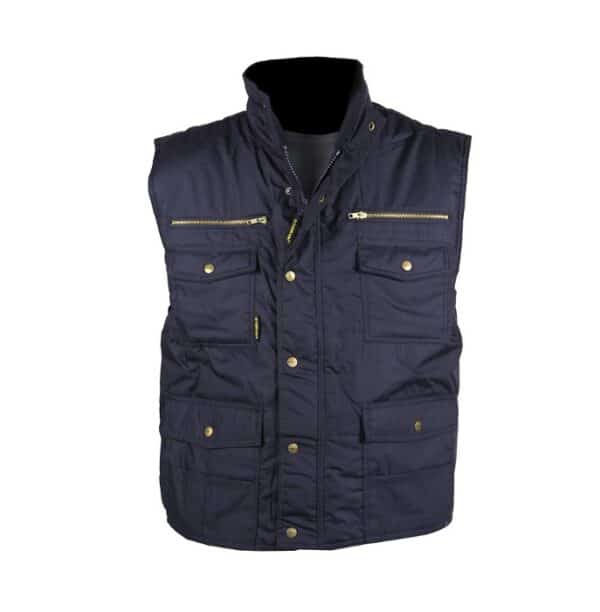 Storvik werkbodywarmer 16-Pocket in een marine blauwe kleur. De bodywarmer is winddicht en waterdicht en de kraag is gevoerd met fleece. De werkbodywarmer beschikt over een verstelbare taille, extra lange rug, 4 borstzakken, 4 steekzakken, 2 opzetzakken en een grote binnenzak. De bodywarmer en kraag zijn gevoerd met fleece.